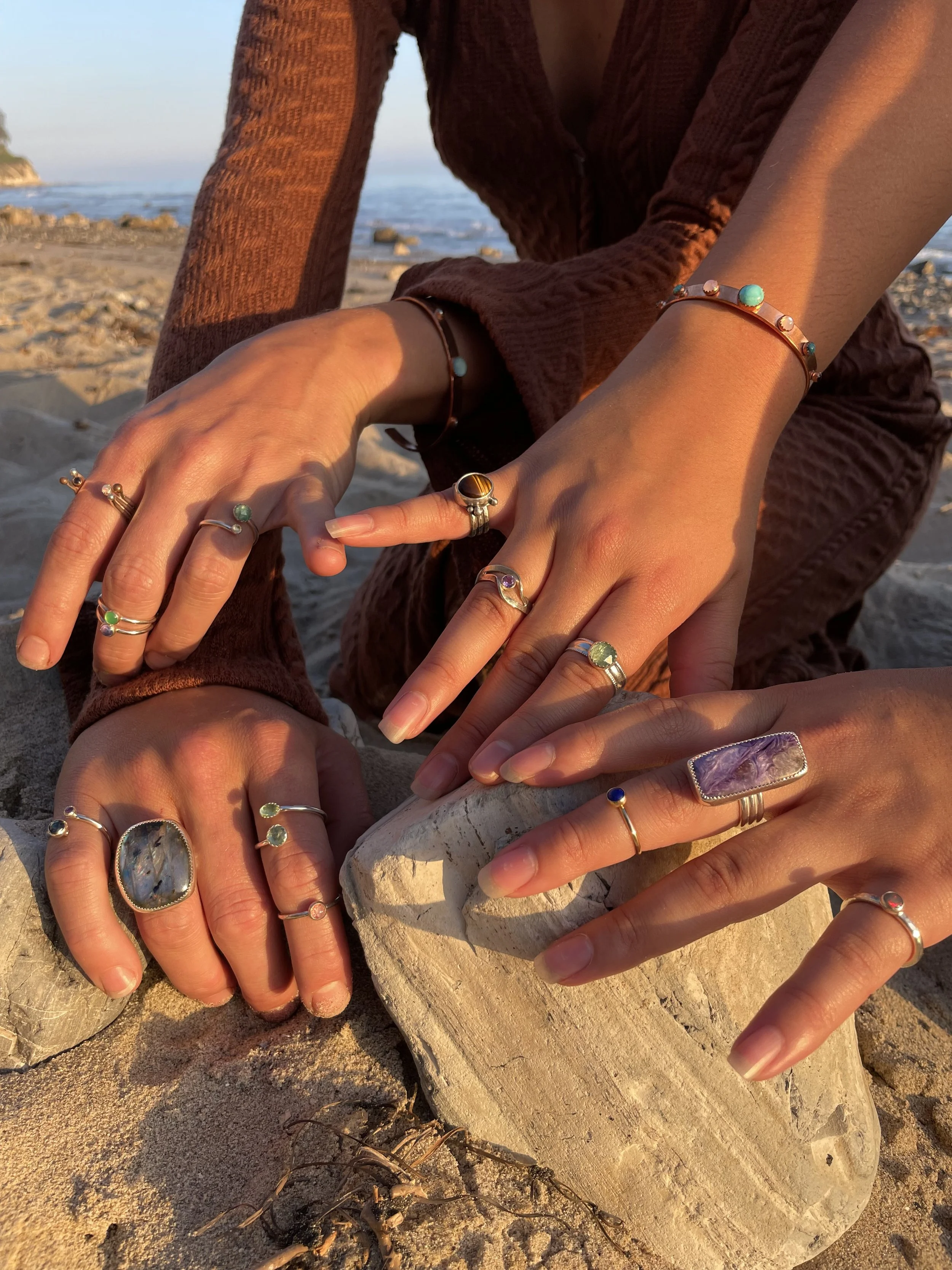 Hi my name is Matt, the owner and designer at Moon Mountain Jewelry. I have a passion for minerals, metals, and the beauty of the natural world. I’m also a rockhound, and musician. I fabricate all designs with patience, love, and care in my studio, a few hundred feet from the Pacific Ocean in Santa Barbara, California.